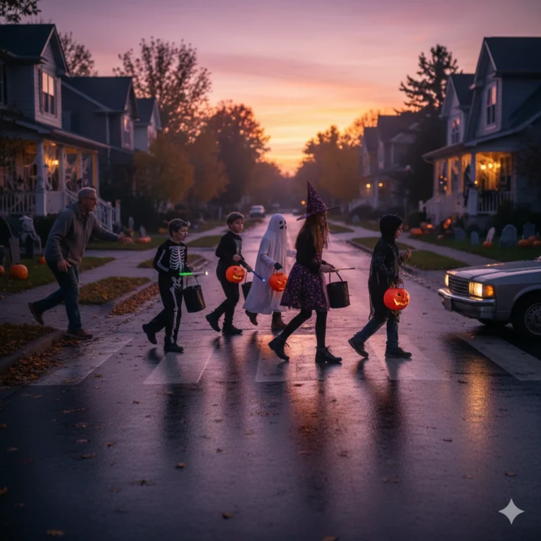 On Halloween, it is common to see children, teenagers, and entire families walking in neighborhoods at dusk or after dark. Many costumes lack reflective elements, meaning even a person only a few yards ahead might not be visible until headlights catch them. Streets may also have temporary gatherings, trunk-or-treat events, or community block parties that bring cars to sudden stops or narrow traffic lanes.