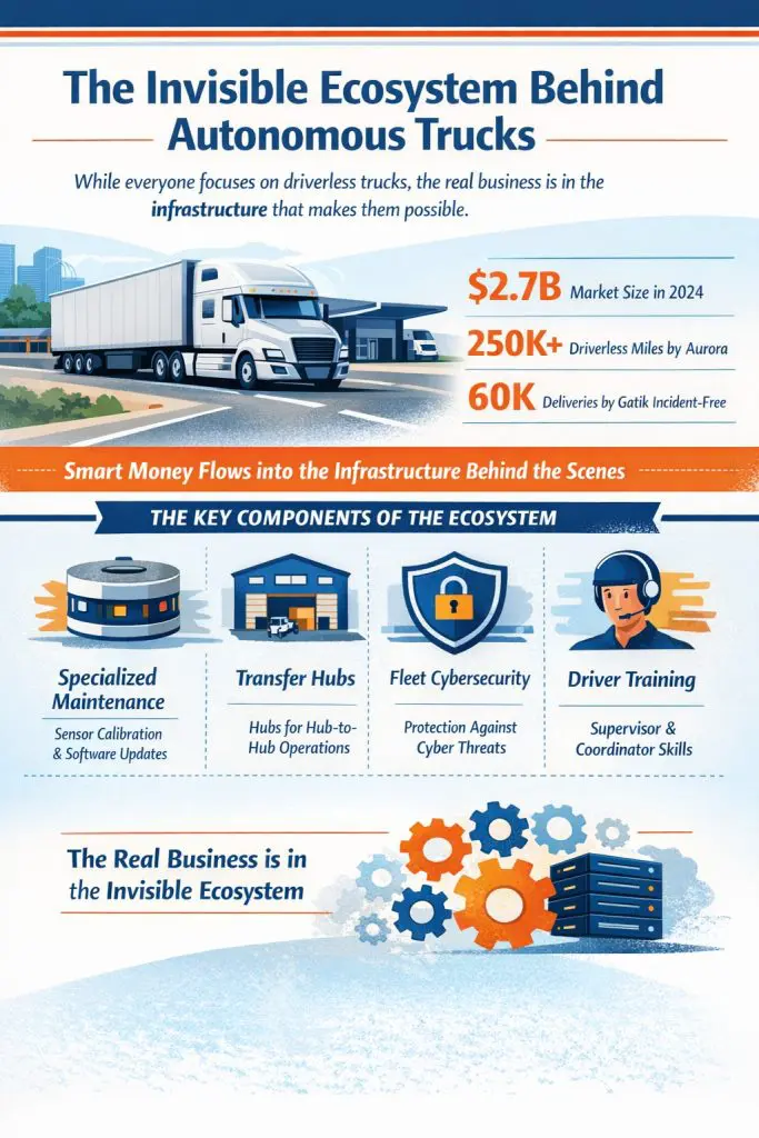 Because while autonomous trucks may be the visible face of this transformation, the real business — and the real competitive advantage — lies in the invisible ecosystem that powers them.