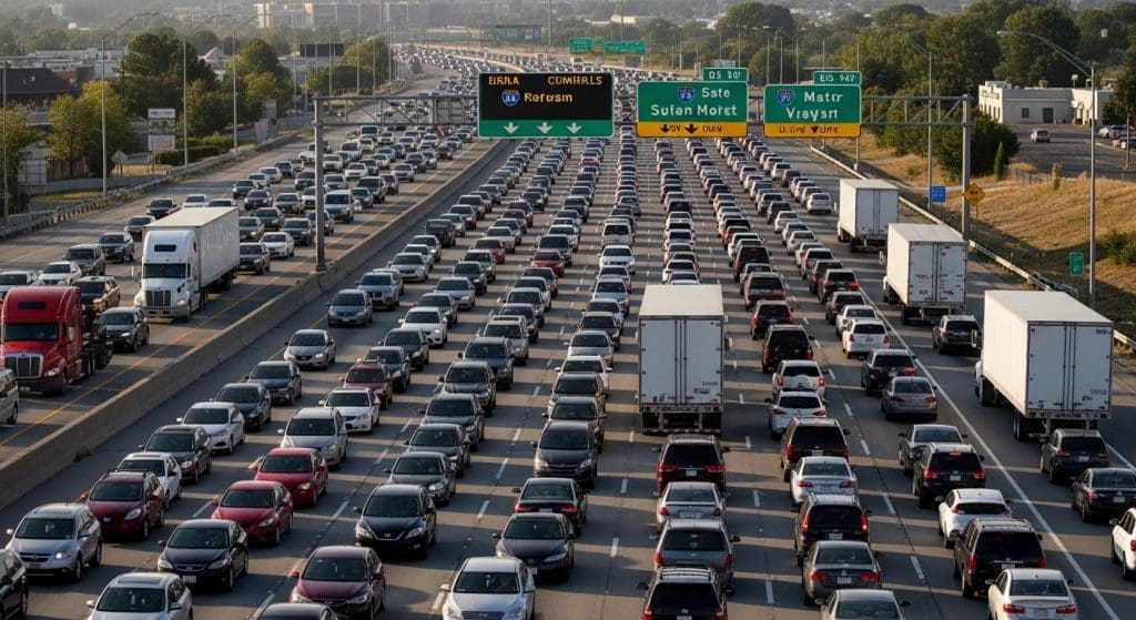 En estos corredores, las velocidades promedio en hora pico caen a niveles críticos, con un promedio nacional de apenas 34,2 mph en los tramos más congestionados.