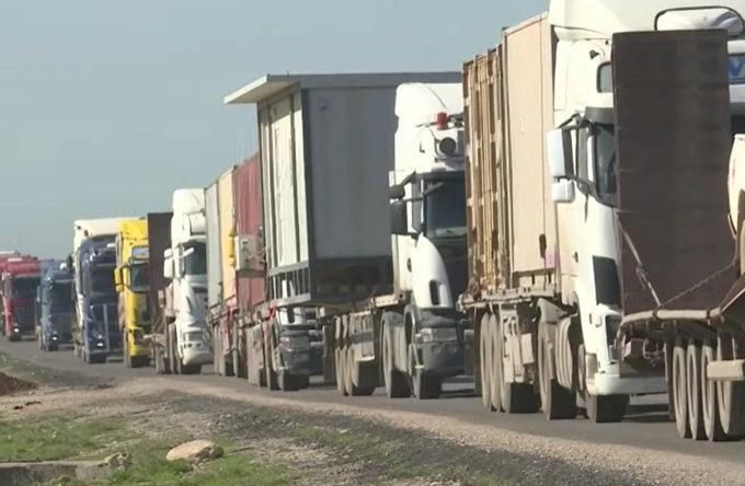 For observers on the ground, the most striking image was not aircraft or troop movements, but endless lines of heavy military trucks moving steadily across the desert landscape.