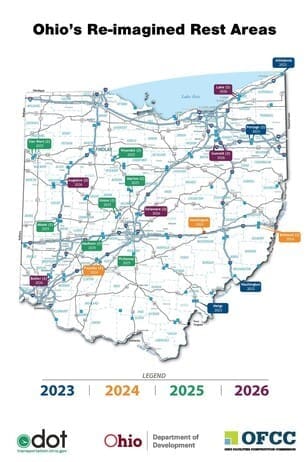 En este momento ODOT cuenta con 85 áreas de descanso en sus carreteras. El Secretario de prensa de la Oficina Central del Departamento de Transporte de Ohio, Matt Bruning detalló a Transport Topics que: “Estas áreas de descanso reinventadas incluirán mejores servicios e instalaciones más limpias y modernas”.