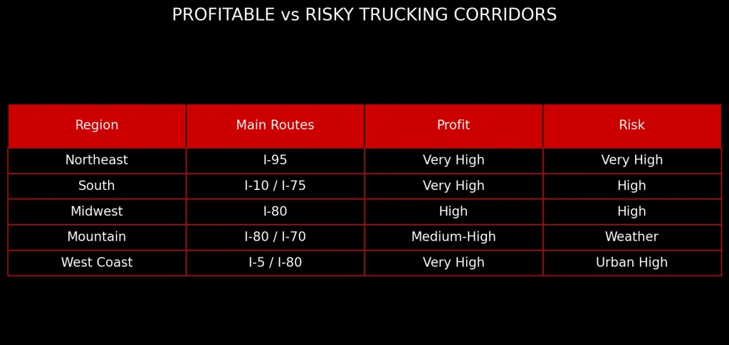 Encontrar el equilibrio entre rentabilidad y seguridad es la gran estrategia del transporte moderno. Las rutas más rentables y más peligrosas para camioneros en Estados Unidos concentran volumen, dinero y riesgo al mismo tiempo.